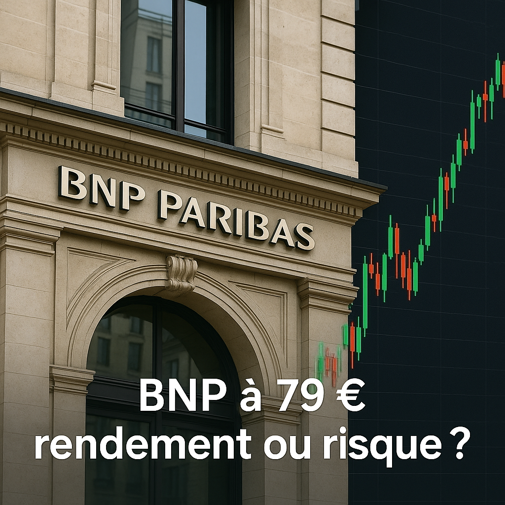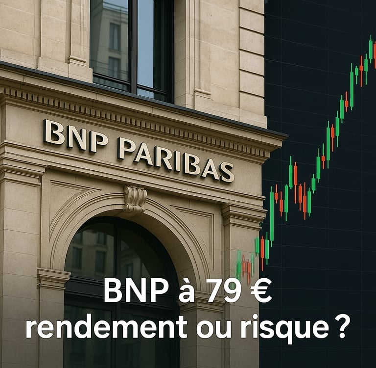BNP Paribas à 79 € : rendement ou risque ? Atouts : diversification, dividende >6 %, solidité financière. Risques : dette française, contexte politique, taux longs. Un titre à conserver… mais avec prudence.