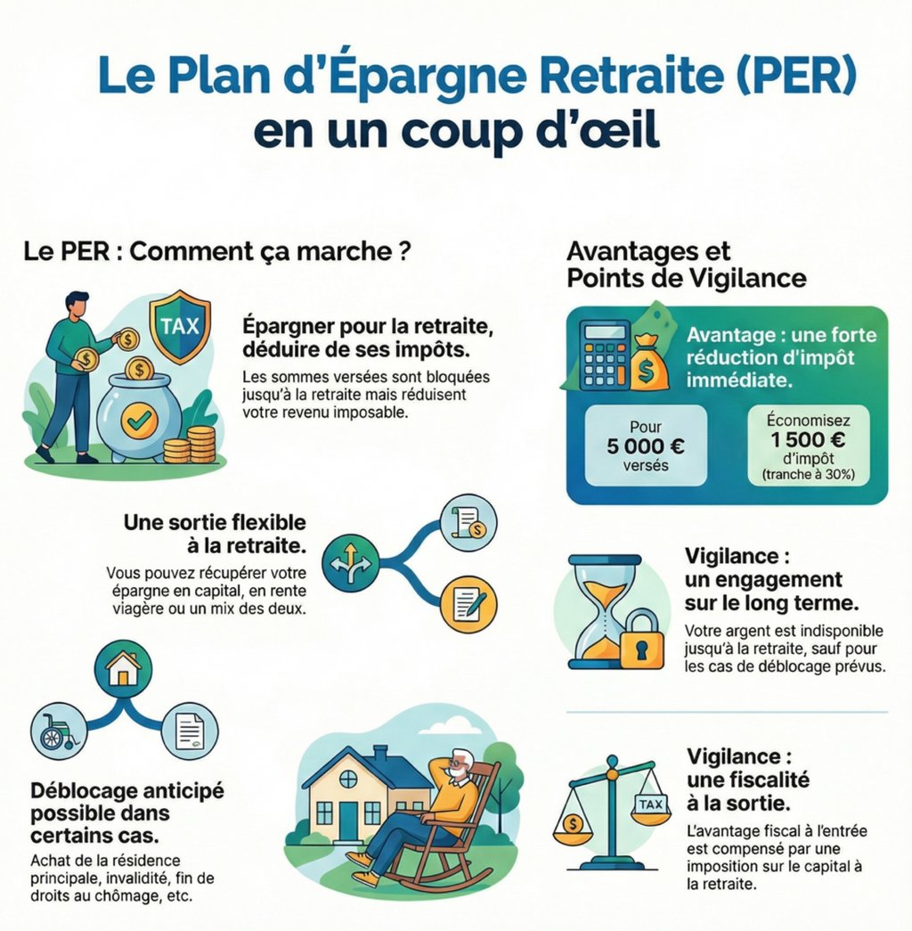 Le PER se présente comme un outil moderne, flexible et fiscalement attractif pour la préparation de la retraite. Il articule un avantage fiscal immédiat avec la constitution d'une épargne de long terme, tout en offrant une souplesse appréciable via les cas de déblocage anticipé.