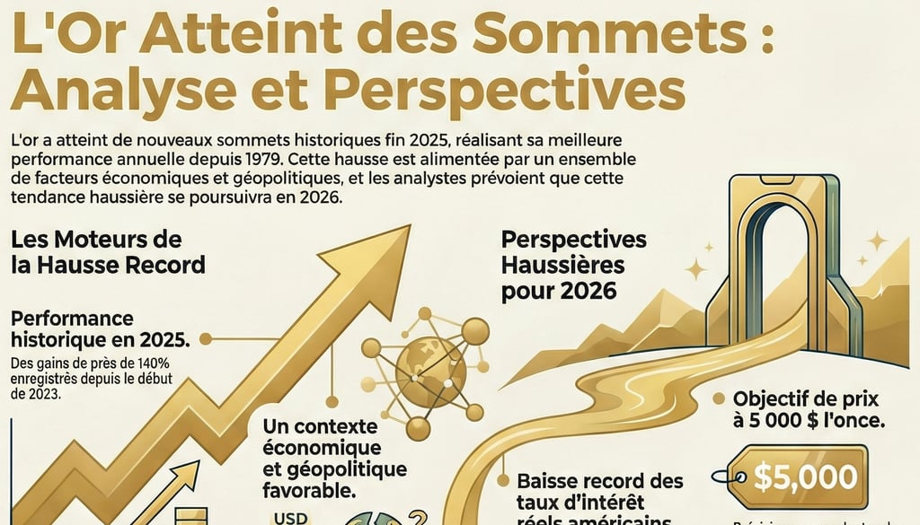 Le prix de l'or a terminé l'année sur une note spectaculaire, atteignant des sommets historiques qui ont surpris de nombreux observateurs. Mais cette ascension n'est pas le fruit du hasard. Elle est le résultat d'une convergence de facteurs puissants, incluant, selon les stratèges d'UBS, la "faiblesse du dollar américain, des tensions géopolitiques, des incertitudes institutionnelles et une faible liquidité saisonnière". Cet article décrypte les forces clés, parfois contre-intuitives, qui propulsent le métal jaune vers de nouveaux sommets.