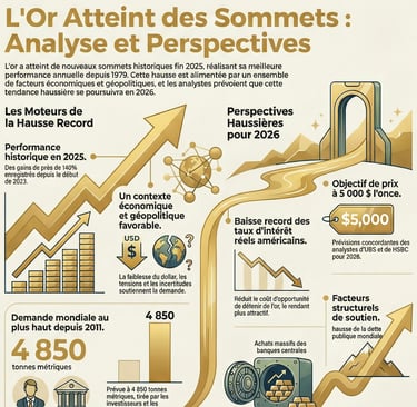 La hausse spectaculaire de l'or n'est pas une anomalie. Elle est le résultat d'une tempête parfaite où des facteurs économiques, monétaires et géopolitiques s'entremêlent. La baisse des taux d'intérêt rend l'or attrayant, tandis que la dette souveraine galopante et l'instabilité mondiale le rendent nécessaire comme couverture.