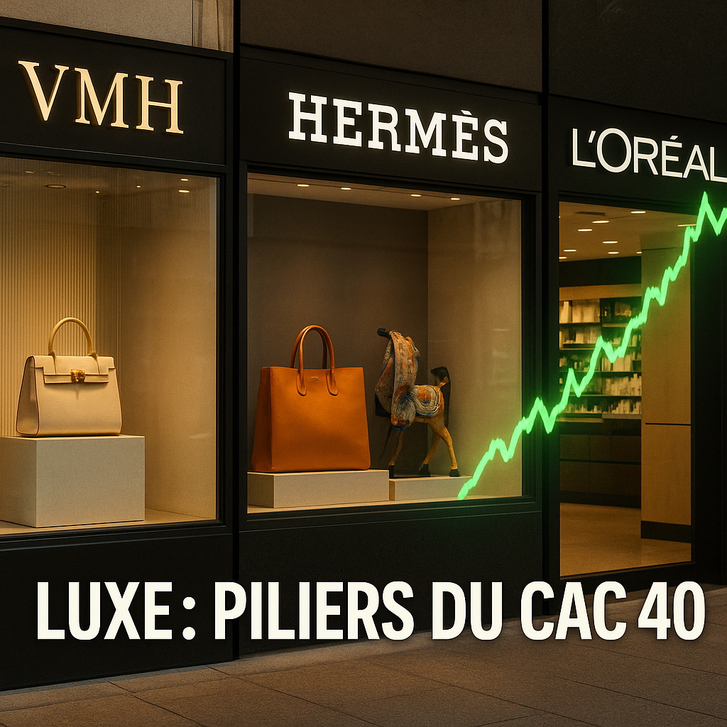 LVMH, Hermès, L’Oréal : plus de 600 Md€ de capitalisation cumulée. Pourquoi ces trois géants du luxe & beauté tiennent le CAC 40 debout ? Internationalisation, Résilience du luxe, Bénéfices record, En cas de correction, ce sont les premières à renforcer.
