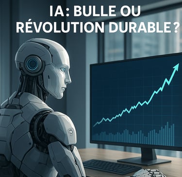 IA : bulle ou révolution. Nvidia & Microsoft au sommet. Valorisation record, ETF surchargés. Marché haussier, mais à surveiller. L’IA n’est pas une mode. C’est un cycle économique majeur.